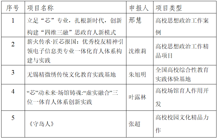 根据江苏省教育厅下发的《省教育厅办公室关于做好教育部2026年度高校思想政治工作质量提升综合改革与精品建设项目和第四批省级项目申报工作的通知》要求,经自主申报、单位推荐、校内外专家评议,拟推荐以下项目申报教育部2026年度高校思想政治工作质量提升综合改革与精品建设项目和第四批省级项目精品建设项目: