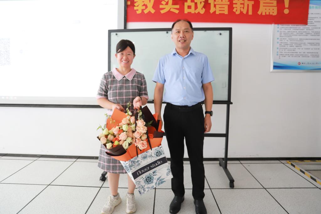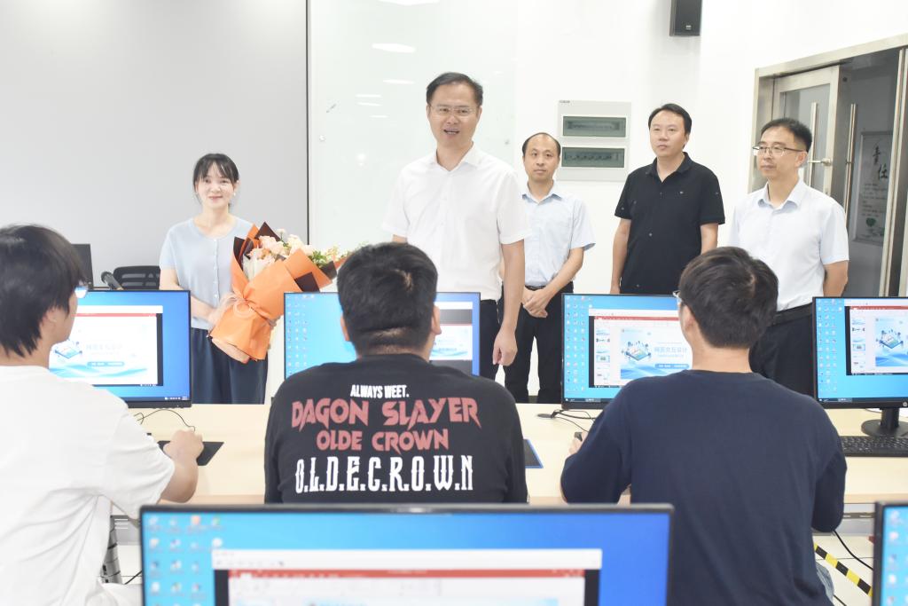张瑜院长一行走访了实训楼和教学楼,向杜化俊、卢晓艳老师送上鲜花。张瑜院长充分肯定了各位教师在人才培养方面的辛勤付出和积极贡献,并询问了实践教学环节的准备情况。他要求,要持续深化产教融合,不断加强实训教学建设,切实提升学生的职业技能与综合素养。