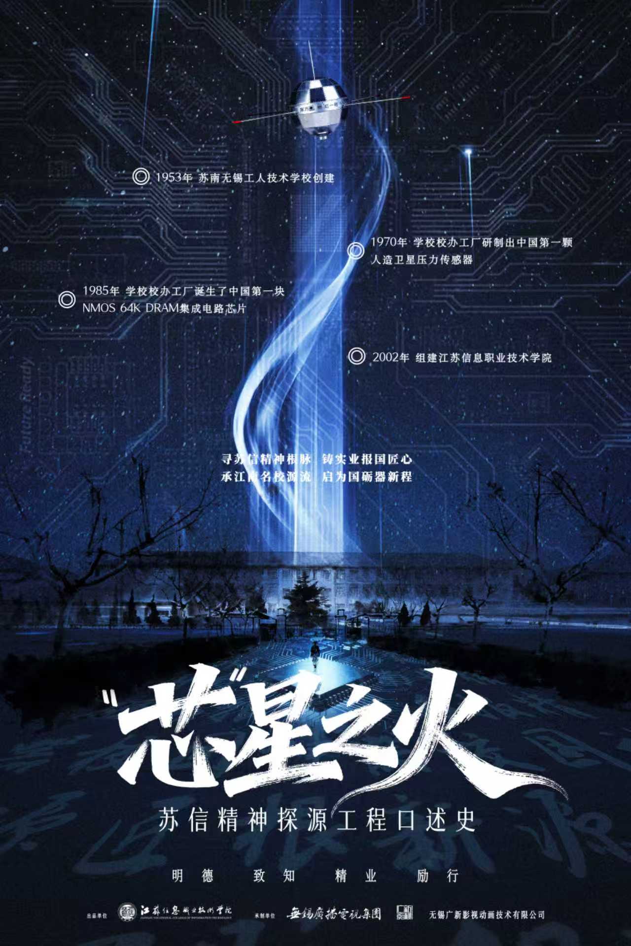 《“芯”星之火——苏信精神探源工程口述史》项目是“苏信精神”探源工程重要内容之一。该项目由我校联合无锡广播电视台属公司(无锡广新影视动画技术有限公司)共同制作,旨在通过口述史的形式深度挖掘并传承学校人文历史,构建一部鲜活生动的校史文献,凝练展现学校“明德、致知、精业、励行”的精神内核。
