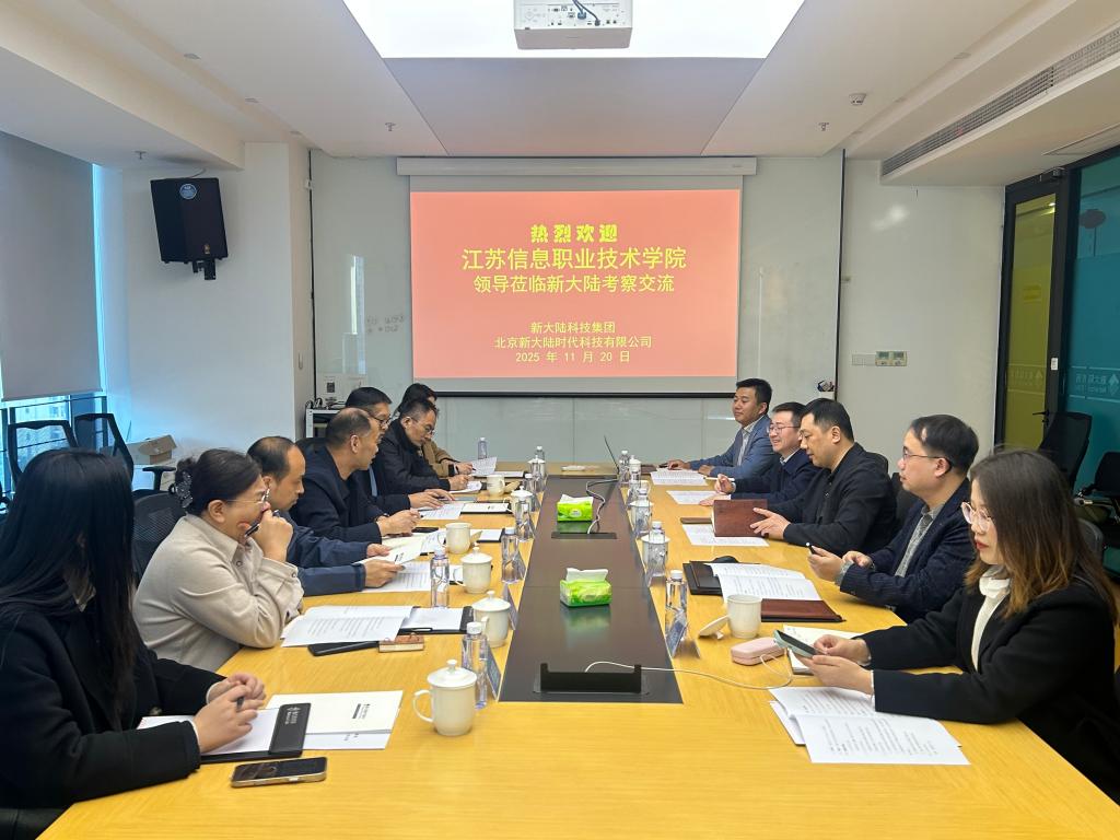 张瑜校长对新大陆科技集团长期以来支持我校人才培养工作表示感谢。他指出,学校重视与公司建立的长期稳定合作关系,希望进一步加强校企合作,推进产教融合高质量发展,能够产出一批高水平“五金”建设成果。张瑜校长建议组建全国物联网产教融合共同体工作专班,推动开展共同体各项建设任务;利用校企双方在物联网应用技术的数字化资源优势,共同建设“感知校园”,即物联网技术生态链在高校全领域应用场景,打造高职院校校园物联网应用场景的江苏样板,引领全国高职院校物联网应用技术的创新发展。