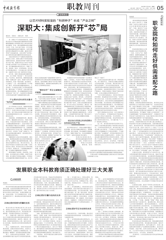 今年以来,学校在党委部署推动下持续组织教师围绕职业教育改革发展重大问题开展研究,推动研究成果在国家级主流媒体上不断发声,展现了学校高等职业教育研究的理论深度与现实关怀,也反映出学校在科研平台建设、成果培育与宣传推广方面的持续支持与系统推进。(高等职业教育研究所:徐晗溪;审核:王永红)