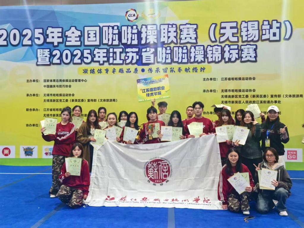 11月28日至30日,2025年全国啦啦操联赛(无锡站)暨江苏省啦啦操锦标赛在无锡市伯渎河体育中心圆满落幕。我校20名啦啦操队员,在体育部党支部书记丁正军的带领下,于张雯、李晨阳、王志玲、方胜香、艾雪娜等教练的精心指导下,凭借活力四射的表现获得校园示范街舞啦啦操第一名。
