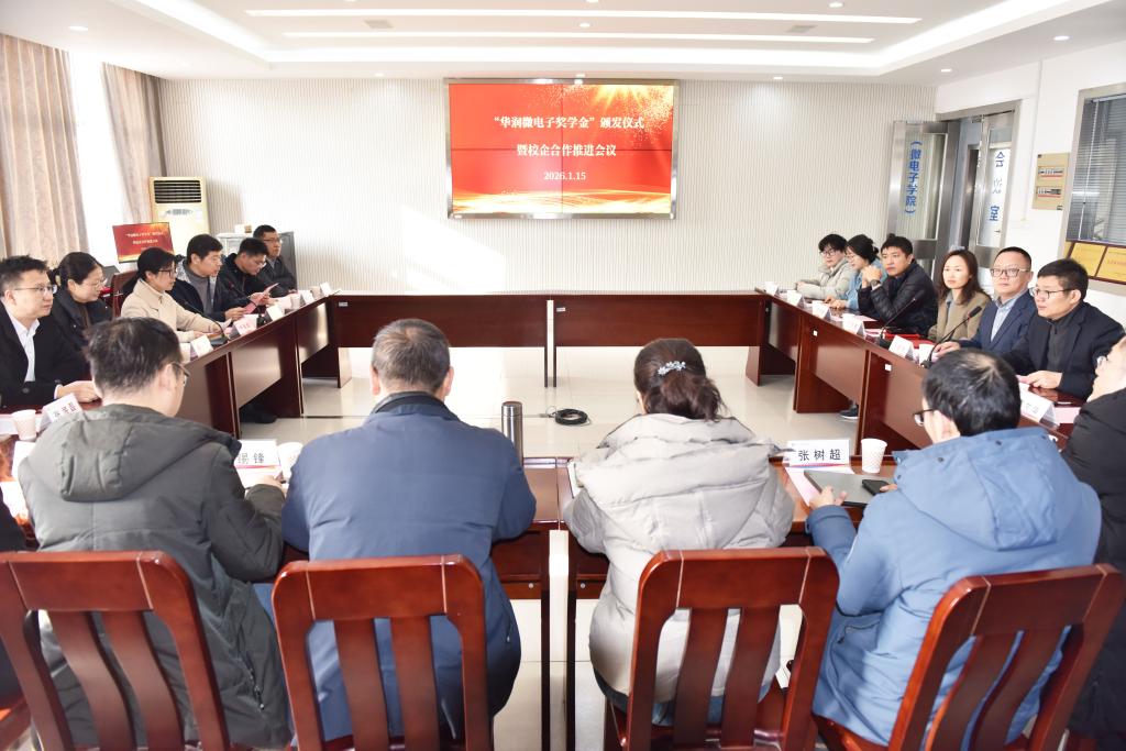 1月15日,“华润微电子奖学金”颁发仪式暨校企合作推进会议在我校微电子学院举行。学校副校长宋丽娜、华润微电子有限公司人力资源总经理王建锋、制造中心人力资源高级总监高鹏飞等领导出席活动。