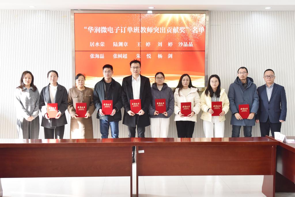 会上,为“华润微电子奖学金”“华润微电子订单班教师突出贡献奖”“杰出校友”及“校企合作突出贡献个人”进行了颁奖,授予了华润微电子有限公司“2025年度高质量实习就业基地”称号。