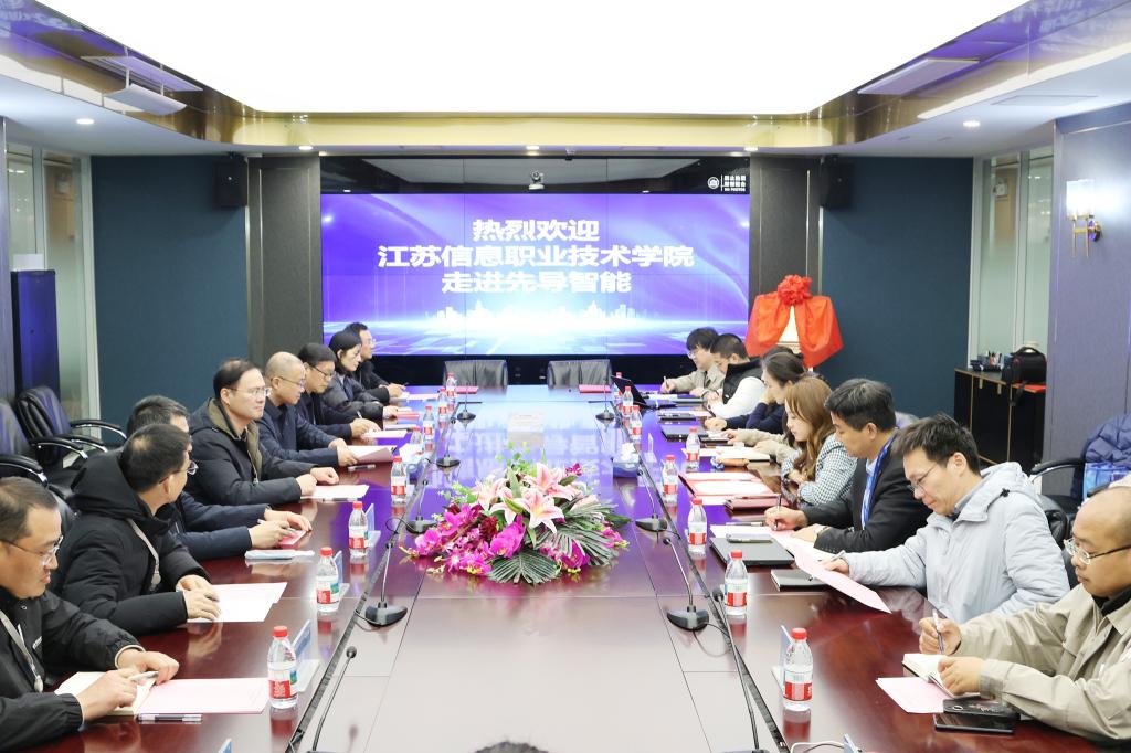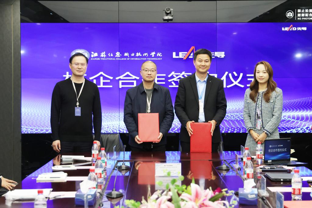 在双方领导共同见证下,徐振邦副校长与刘登益总监代表双方签署校企合作协议。左同宇书记与宫晨瑜副总裁共同为“江苏信息职业技术学院校外实训基地”揭牌。徐振邦副校长与刘登益总监共同为“江苏信息—先导集团智能装备产学研合作基地”揭牌。
