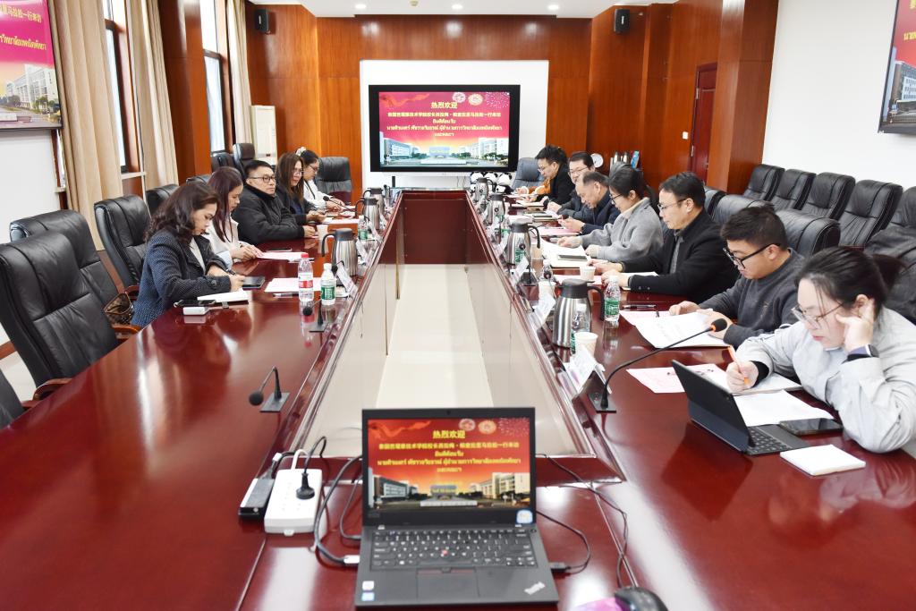 在交流环节,双方以共建“一带一路”同泰国“东部经济走廊”建设对接合作为主题,围绕“高校+企业”双向赋能培养模式、专业建设、师生交流等方面进行了深入探讨。