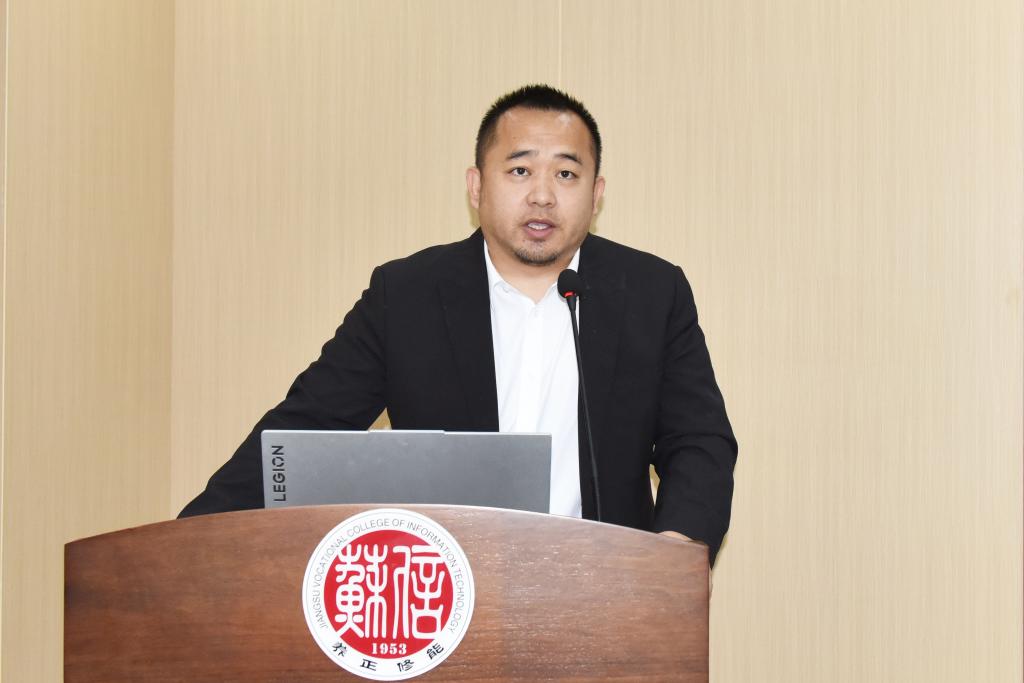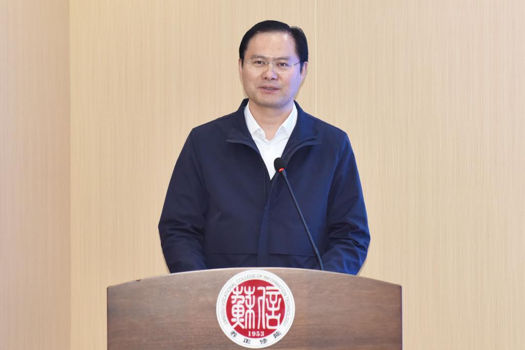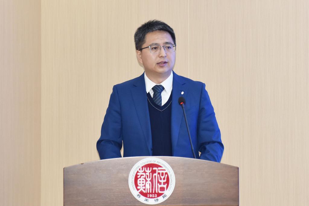 无锡市工业和信息化局四级调研员杨孟祥、TCL中环电池组件制造中心总经理赵越分别致辞,对苏信·TCL产业学院成立表示热烈祝贺。杨孟祥调研员从坚持育人为本打造高技能人才培养高地、坚持协同创新打造产学研融合示范平台、坚持开放合作打造职业教育国际化发展新窗口等三个方面提出工作建议。赵越总经理表示,本次合作是TCL集团统筹全产业链资源、深化产教融合的重要布局,期待政行企校四方协同发力,在人才培养、师资共育、技术创新等方面打造高技能人才集群培养样板,为产业发展注入新动能。