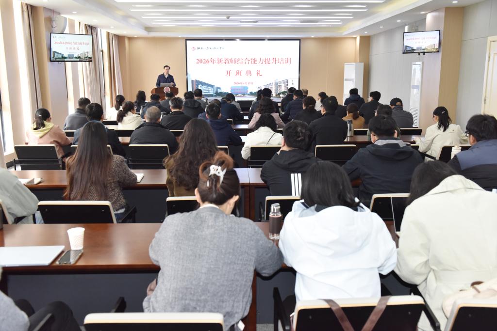 4月15日,我校召开2026年新教师综合能力提升培训开班典礼。校党委书记左同宇、校长张瑜、副校长徐振邦出席会议。会议由副校长徐振邦主持。