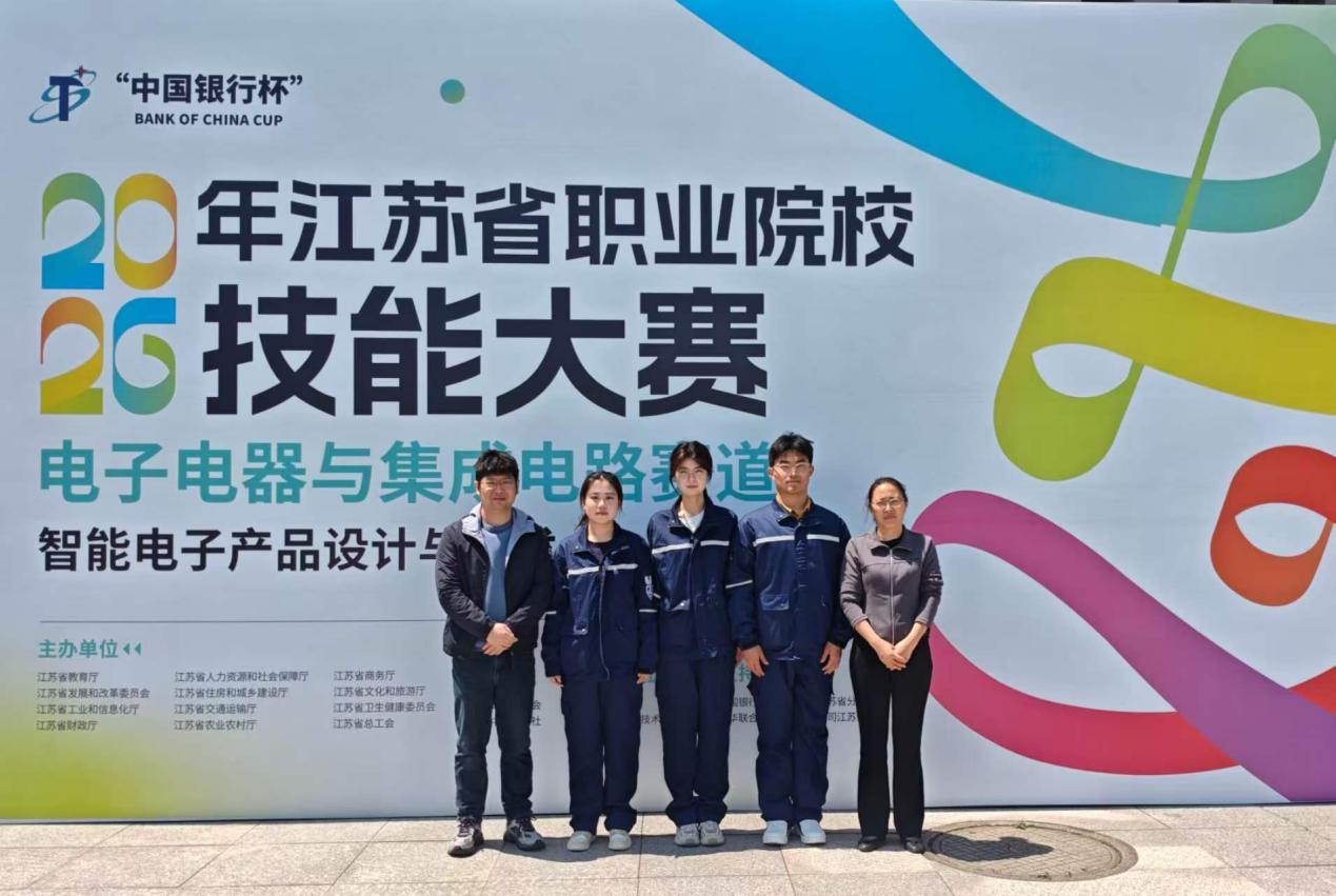 4月17日至19日,2026年江苏省职业院校技能大赛智能电子产品设计与开发赛项在我校成功举行。来自全省29支参赛队伍的87位选手同场竞技。经过激烈角逐,我校微电子学院陈洁、章黎明老师指导的沈凡宇、刘思雅、潘明瑶学生团队荣获一等奖第一名。