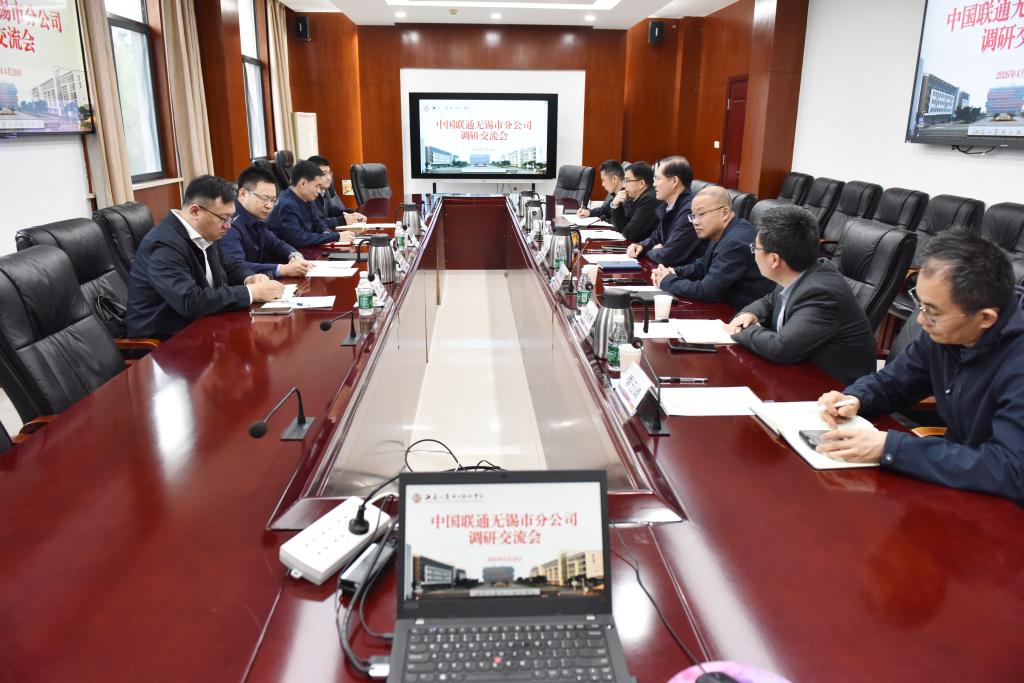 4月28日,中国联通无锡市分公司总经理夷淑华、副总经理吴昕烨一行来校调研交流。我校党委书记左同宇、副校长徐振邦出席会议。